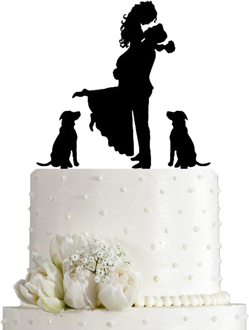 Amazon Com Wedding Cake Topper Bride Hold Groom With Flowers Besides 2 Pet Dogs Silhouette Cake Decoration Black Grocery Gourmet Food